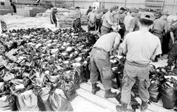 Elementos del Ejército preparan despensas, las cuales serán