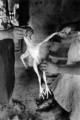 Maya Goded fotografía a cuatro manos que despluman a una gallinita a