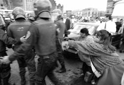 Integrantes de El Barzón metropolitano, frente a las instalaciones de