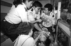 En ambulancias de la Cruz Roja local y de la Sedena, personal médico trasladó a los heridos a las clínicas del IMSS en Magdalena de las Salinas y Lomas Verdes, así como a un hospital regional de Coacalco, donde la niña Alma Delia Urbán, de 10 años de edad, perdió la vida mientras recibía atención médica.