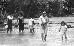 Habitantes de Puerto Escondido, rumbo al albergue. Foto:
