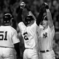 Tino Martínez (derecha) recibe la felicitación de sus
