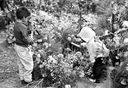 Niños nahuas cumplen con la costumbre de visitar a los muertos en su