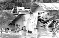 San Pedro Sula, intentan po-nerse a salvo nadando a través