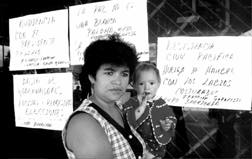 La señora Cecilia Gordillo García se suturó la boca frente al palacio