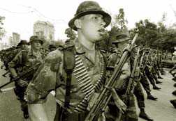 La falta de democracia y de consenso mayoritario en el ejercicio de la gobernabilidad predispone el uso de las Fuerzas Armadas para contrarrestar lo que califican ``desorden interno''. Pero eso, a su vez, favorece la inestabilidad, aísla al propio gobierno y provoca el descrédito de la institución castrense. En lugar de que el Ejército defienda los intereses del pueblo, atenta contra él para someter sus muestras de descontento.