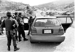 Retén militar en la carretera principal de acceso a Chenalhó,