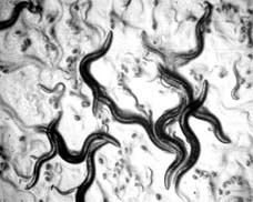 Vista microscópica del nemátodo Caenorhabditis elegans, una lombriz que mide menos de un milímetro de largo y que ha ayudado a los científicos a develar el misterio de la vida. Investigadores estadunidenses y británicos invirtieron 15 años hasta lograr identificar los 20 mil genes de la lombriz. Para hacerlo, los científicos tuvieron que hallar y mantener una secuencia de unos 97 millones de parejas básicas de ADN. Se estima que ello es un paso gigante en el camino hacia el descubrimiento del patrón genético humano o genoma, que tiene unos 89 mil genes arreglados en 3 millones de parejas moleculares de ADN, del cual ha sido mapeado aproximadamente 7 por ciento Ť Foto: Ap