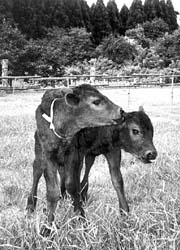 La imagen muestra dos de ocho terneras que fueron clonadas de una sola vaca adulta. El experimento fue realizado por el investigador japonés Yoko Kato y sus colegas de la Universidad de Kinki, quienes demostraron una de las más eficientes técnicas de clonación hasta la fecha desarrolladas Ť Foto: Reuters