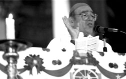 El obispo Samuel Ruiz García, durante una misa oficiada ayer en