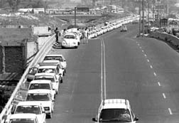 Taxistas en periférico norte. Foto: Carlos Cisneros/archivo de La Jornada