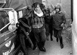 Uno de los detenidos ayer, tras el enfrentamiento entre comerciantes y