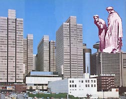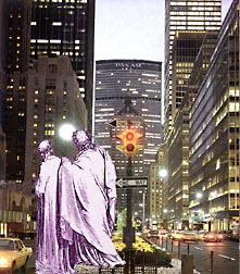 Martella reía maravillado. Por más que forzase la vista, no alcanzaba a ver el límite de la ciudad: terrazas, cúpulas, rascacielos, torres, pináculos, banderas al viento y, una vez más, terrazas, cúpulas, pináculos, torres, banderas, siempre más y más lejanas que parecerían no tener fin. Pero había otra cosa: no se veía ningún campanario. Entonces Martella preguntó: ``¿Y las iglesias, qué no hay iglesias aquí?'' ``¡Bah!'' respondió Francesco y pareció sorprendido por la ingenuidad. ``Aquí no parecen necesarias, ¿no es verdad?''