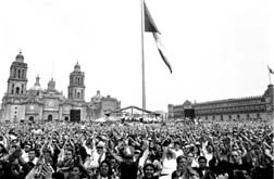 | La danza de las cifras. La policía calcula 5 mil asistentes; los organizadores, 80 mil. Lo cierto es que una alfombra colorida ocupaba de forma constante la plancha del Zócalo | Serrat, el gestor de la coincidencia afortunada entre deseo y realidad, el prestidigitador de ambientes, la contraseña perdida de tres generaciones | ![]() | ![]() |