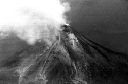 Aspecto de las emisiones de material incandescente, lava y fumarolas