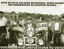 Y se emprendió una grosera campaña de desprestigio contra Salgado Macedonio, que incluyó la distribución de panfletos y spots radiofónicos que alertaban a la población de los riesgos de votar ``por un loco'' y la circulación de impresos -como los de Antorcha Campesina- en los que se denunciaba ``el mal gobierno'' de Cuauhtémoc Cárdenas.