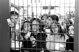 Estudiantes de la Uia protestan porque no pudieron entrar a la reunión con el rector de esa institución, en la Universidad La Salle n Foto: José Carlo González