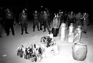 la policía; 20 lesionados