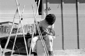 Un niño de la colonia triqui, en labores de estudio en Nueva San Juan Copala, en el Valle de San Quintín n Foto: Elsa Medina