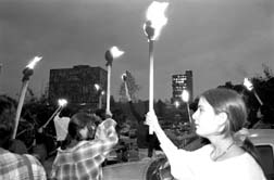 Durante la marcha de universitarios del monumento a Alvaro Obregón a