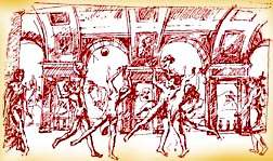 ¡Qué hermoso! Con todos estos hombrecitos en fila, todos autoridades de su religión... uno sobre la cabeza del otro, según la jerarquía... éste es un papa... éste es un cardenal... ¡Imagínense si esto se usara en el Vaticano! Imagínenme paseando a la cabeza de todos mis cardenales... haciendo equilibrio... Poletti... Casavoli... ¡sopas! ¡Ay, Poletti lo siento!