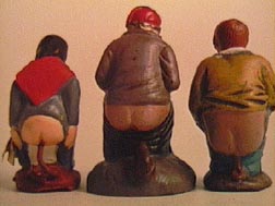 Una muerte absurda: morir en el empuje final. Morir con los pantalones abajo, concentrado en ese momento puntual de la existencia solitaria. Sufrir un paro cardiaco mientras el intestino sigue su cumbia, contoneándose para expulsar un poco de desechos y -de pronto- el rigor mortis, la contracción, y ahí va el cadáver con la mitad de su labor eternamente adentro. Una muerte absurda, no incluida, hasta donde recuerdo, en el listado de muertes sin sentido de Mañana en la batalla piensa en mí, de Javier Marías, pero que sí cuenta con una representación popular: un hombre con los ojos desorbitados atrapado por los ceramistas en el momento de expulsar un cono hacia el suelo. En Cataluña le llaman el caganer, el cagón, y se vende al lado del Niño Jesús afuera de las iglesias. En México nunca lo he visto más que en anaqueles de figuritas para adornar las repisas del estudio. Inmortalizado en yeso es el muerto de toda resurrección: algo de lo que fue en vida regresará a la tierra, abonará los campos donde crece la comida que comerán los vivos. Quizás todos dejamos lo desechable para las próximas generaciones.