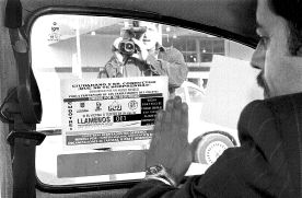 Muestra de las nuevas calcomanías que deberán portar en lugar visible los taxis, con el objeto de dar mayor seguridad a los usuarios n Foto: María Luisa Severiano