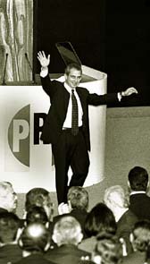 Hace un año, ya con las derrotas en el DF y la Cámara de Diputados a cuestas: ``Todos los ciudadanos, todos los partidos políticos saben que mi afinidad ideológica está con el PRI, que mi convicción política está con el PRI. Todos los ciudadanos saben que aprendí a servir a México en el PRI. Fui electo Presidente de la República con la plataforma política, los principios y el programa del PRI...'' (documentos donde se incluye, por ejemplo, el carácter intocable de la industria eléctrica como patrimonio nacional).