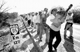 El Exodo por la democracia salió de Iguala hacia los límites con el estado de Morelos n Foto: J. Guadalupe Pérez