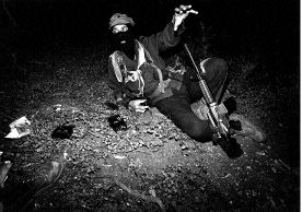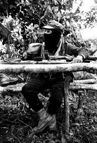 El jefe guerrillero durante la entrevista concedida a La Jornada en algún punto de la selva Lacandona n Fotos: Pedro Valtierra