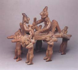 Un mundo casi desconocido es el que nos revelan las maquetas de casas, canchas de juego de pelota, escenas de festividades y centros ceremoniales: la arquitectura monumental del occidente de México representada en barro.