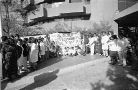 Plantón de doctores y pacientes frente al Instituto de Salud Mental en protesta por la desaparición de éste y el despido de la mayoría del personal n Foto: Carlos Mamahua