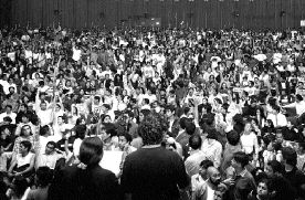 Asamblea de estudiantes en el auditorio Che Guevara de la Facultad de Filosofía y Letras, poco después de haber recibido a los zapatistas n Foto: Carlos Cisneros