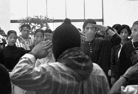 Oradores zapatistas durante el mitin realizado en el Zócalo por el Sindicato Mexicano de Electricistas en contra de la privatización del sector eléctrico n Foto: José Antonio López