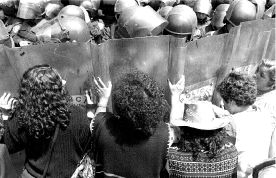 Ambulantes de la organización que dirige Sánchez Rico forcejean con granaderos, fuera de la Procuraduría General de Justicis del Distrito Federal n Foto: Carlos Cisneros