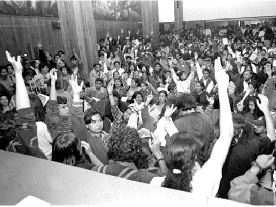 Asamblea de estudiantes de la UNAM en el auditorio Che Guevara de la Facultad de Filosofía y Letras, para decidir si se van a la huelga n Foto: Carlos Mamahua