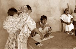 Los delegados zapatistas llegaron a Tewerichi cuando ya los rarámuri estaban terminando de firmar el resultado de su acuerdo comunitario. Junto a su nombre escrito por Juan, Arturo y otros escribanos de turno, ponían sus firmas los menos y su huella digital los más. El acuerdo había sido claro: ``sí'' a las cuatro preguntas. Se habían tomado en serio, como se hace en las asambleas suyas, sin leyes ejidales ni otras extravagancias, lo de los doce años libres para acordar y firmar. Mujeres y hombres, niños y ancianos, iban pasando a la mesa en el portal.