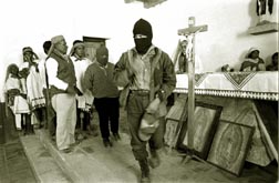 Se escuchaban los tambores de danza de los `fariseos', se veían pasar, se organizaban a lo lejos para iniciar el rito. Ni a mirar fueron los delegados zapatistas. Sólo cuando se cerró la mesa salieron a saludar, a platicar, a aturdirse con los muchos tambores indios y a presenciar el inicio de la danza del tiempo cuaresmal. La novedad era mucha, el corazón era el mismo, pero no comentaban de esas cosas los delegados, ni sobre pregunta expresa. No habían venido a pasear como turistas, ni siquiera a conocer horizontes paralelos. Traían una intención precisa, una misión exacta, y lo dejaban ver.