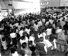 Comenzó la sucesión de interminables filas de los capitalinos que buscan a toda costa pasar unos días en la tranquilidad de la provincia, lejos del tráfago citadino. Las imágenes co- rresponden a la Central Camionera de Oriente