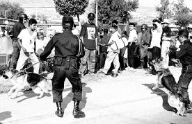 Las fuerzas de seguridad de Guerrero impidieron que los perredistas simpatizantes de Félix Salgado Macedonio se acercaran al recinto donde rindió protesta como gobernador el priísta René Juárez Cisneros n Foto: Francisco Olvera