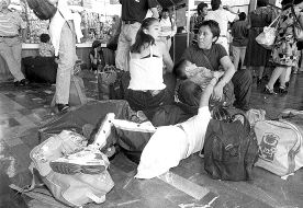 Esperan la salida de su autobús en la Central Camionera del Sur n Foto: Carlos Mamahua