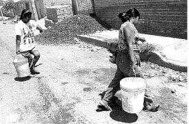 Debido a la escasez de agua, los habitantes del barrio La Loba 1 deben acarrearla con sus propias manos n Foto: José Carlo González