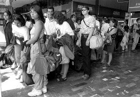 Filas para abordar un taxi en la central camionera del sur n Foto: Duilio Rodríguez
