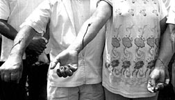 Trabajadores de los servicios de salud protestan sacándose sangre frente al edificio de gobierno del DF n Foto: José Antonio López