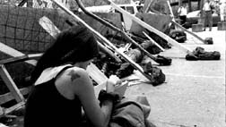 Y sólo los preparatorianos del plantel seis, en Coyoacán, se declaran, al aproximarse su cuarta cena en la primera huelga de sus vidas, "hartos del atún y del arroz". Con más problemas en la brigada de comida que en cualquier otra, ellos sienten, en voz de María Benítez, que "a través de los círculos de estudio y mesas redondas" que se han generado espontáneamente en la banqueta con los estudiantes que votaron en contra de la huelga, y que sin embargo siguen acercándose a las rejas de su escuela cerrada, "a todos nos está cambiando la forma de ver las cosas. Los que están contra el paro se quedan pensando. Y nosotros también".