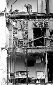 En Belgrado, más de 5 mil personas, entre las que figuraron grupos pacifistas griegos y alemanes, se congregaron en torno al edificio de la televisión estatal serbia que fue bombardeado por la OTAN el viernes.