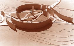La geometría actúa a favor de todas las realidades emocionales que el afán especulativo enmascara o disuelve. Una charamusca -forma presente en el repertorio de González Gortázar- es lo que el espectador decide, y lo que el inconsciente dicta, o enmienda, y lo que se extrae de las memorias de la infancia, y la prueba de la ubicuidad de la tradición. De nuevo la palabra, y todos sus ecos impositivos o enriquecedores. González Gortázar inventa la tradición (sólo así concibe su obra), acata la tradición (sólo así consigue el arraigo suficiente para defender el gran patrimonio), revisa y enmienda la tradición (sólo así la asimila). Larrosa ve esto con lucidez: