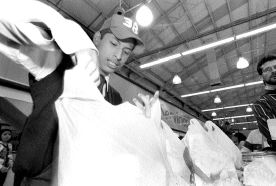 Cerillo, en su trabajo de empacador en un supermercado n Foto: Carla Haselbarth