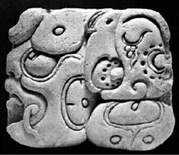 Glifo labrado en estuco que permitió reconocer el nombre de Akul Ahnab