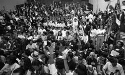 Desde ayer la comisión de enlace se declaró en sesión permanente y nombró subcomisiones encargadas de hacer contacto con las partes en conflicto. Para el Consejo General de Huelga se designó a Elvira Concheiro, Sergio Zermeño y Tim Munzoni, y para el contacto con Rectoría se nombró a Francisco Fernández, Raymundo Cea y Juan Echevarría.